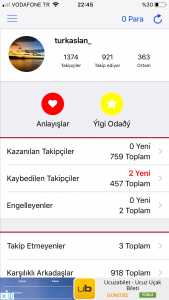 Programı açıp instagram kullanıcı adı ve şifrenizi girerek başlangıç yapınız. Giriş yaptıktan sonra instagramda kazanılan takipçiler , instagramda takibi bırakan takipçileri görün , instagramda sizi engelleyenleri görün , instagram da takipçilerinizden kimler daha çok yorum yapıyor görün , instagramda takipçilerinizden en çok beğenenleri görün. Programın tek eksik kısmı takibi bırak seçeneğinin aktif olmaması onu da zamanla güncelleme ile yapacaklarını umuyoruz.